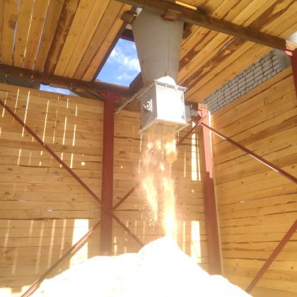 Перегрузчик состоит из корпуса, в который установлен ротор с лопастями и посажен в подшипниковые опоры соединенный с мотор-редуктором.