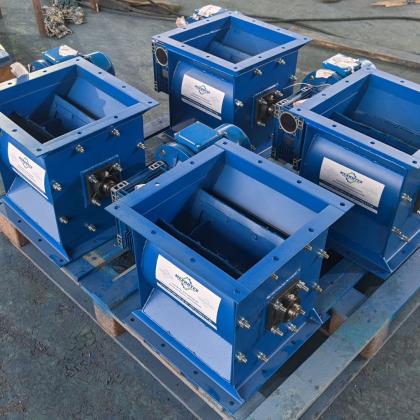 Шлюзовые перегрузчики (дозаторы, шлюзовые питатели или затворы) предназначены для непрерывной выгрузки сырья (материала) из бункеров, фильтров, циклонов и другого оборудования. За счет использования сменных уплотнителей из эластичных износостойких материалов обеспечивается герметичность перегрузчика. С помощью фланцев перегрузчик присоединяется к пневмотранспорту, ленточному или скребковому конвейеру (транспортеру), бункеру и т.д.