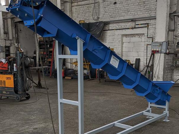Конвейер шнековый (винтовой) желобчатый КШЖ-215х3500-2,2 наклонного исполнения предназначен для транспортировки торфяно-сапропелевой смеси производительностью до 4 м3/ч.